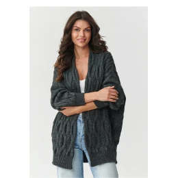 Elegantní, teplý a velmi pohodlný kardigan pro ženy je must-have v každé podzimně-zimní garderobě. Vyrobený z vysoce kvalitní příze o složení 85 % akryl a 15 % polyamidu, ohromuje měkkostí, odolností a odolností proti deformaci. Charakteristický hrubý vzor ve formě copánkovitých pletenin mu dodává jedinečný charakter a dělá každý outfit módním a útulným. Díky oversized střihu svetr zaručuje volnost pohybu a pohodlí nošení, a absence zapínání umožňuje snadné kombinování s tričkem, topem nebo elegantní košilí. Jedná se o skvělý návrh jak na každý den, tak na chladné večery. Kardigan je k dispozici v několika základních odstínech: béžový melír, cappuccino, černý, grafitový melír a šedý melír, díky čemuž každá žena najde barvu, která bude ladit s jejím stylem.