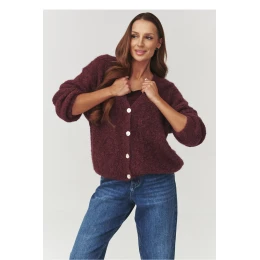 Tento pohodlný sveter z mäkkého bouclé nesmie chýbať v šatníku žiadnej ženy. Je vyrobený z mäkkej a príjemnej priadze a poskytuje teplo a pohodlie aj počas tých najchladnejších dní. Sveter má klasický strih so zapínaním na gombíky, mierne spadnutú líniu ramien a voľné rukávy, vďaka čomu pôsobí štýlovo a žensky. Je k dispozícii v elegantných bordových a čokoládových farbách a skvele sa hodí k džínsom a sukniam alebo šatám. Ideálny do práce alebo na prechádzky počas chladnejších dní. vyrobený v Taliansku.
