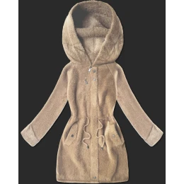 Světle béžová vlněná bunda typu alpaka s kapucí model 21482431 - MHM