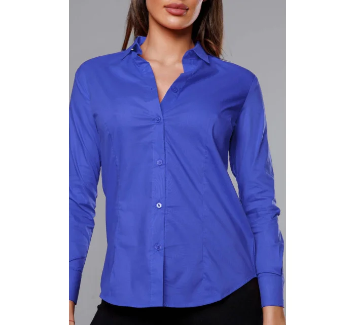 Blúzka je vyrobená z ľahko pružného materiálu, je vypasovaná a zapína sa gombíkmi. Model má dĺžku k bokom.