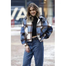 Bunda má střih typu "oversize", má límec, dvě kapsy bez zapínání a zapíná se knoflíky. Rukávy jsou olemované manžetami. Model má délku do pasu a má podšívku.