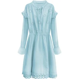 Světle modré bavlněné dámské šaty s výšivkou model 7274562 - MADE IN ITALY