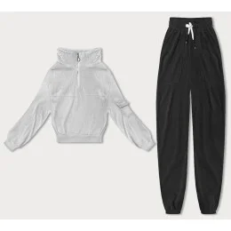 Dámska tepláková súprava s vafľami svetlo sivá (AMG-339A)