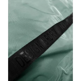 Bunda je zateplená tenkou vrstvou syntetické péřové výplně, má dvě kapsy a zapíná se zipem a panelem s patentkami. Model má kapuci, kterou není možné odepnout. V pase modelu je stahující šňůrka. Bundu je možné ve spodní části na bocích rozepnout. Model má délku do poloviny stehen.