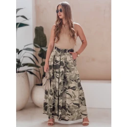 Spódnico-spodnie o wyjątkowo swobodnym kroju, które doskonale łączą komfort i styl. Wysoki stan pięknie podkreśla talię, a elastyczna gumka z tyłu zapewnia wygodę noszenia. Uniwersalny rozmiar pasuje od XS do L. Do zestawu dołączony jest pasek, który uzupełnia stylizację. Model wyposażony w dwie ozdobne kieszenie z przodu. Idealne na codzienne wyjścia oraz spotkania ze znajomymi.