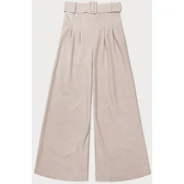 Elegantné dámske nohavice s opaskom svetlo béžovej farby (18727)