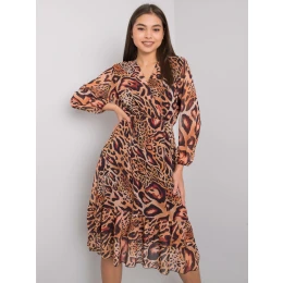 Svetlo hnedé vzorované šaty s volánom.