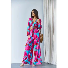 Súprava blúzky a širokých nohavíc modrá (8175)
