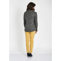 Výjimečně zajímavý svetr s rolákem, vyrobený z měkké, na dotek příjemné příze. Dvoubarevná příze vytváří mírně melanžový efekt. Střih svetru je jednoduchý a pohodlný, s polokřivým lemem vpředu a klasickou rovnou linií vzadu. Výrobek polské značky MKM. Složení: 80% akryl, 10% vlna, 10% polyamid.