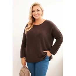 Dámsky plus size sveter s lodičkovým výstrihom hnedý