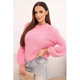 Svetr dámský z baby alpaky s model 21780849 rukávy jasně růžový - K-Fashion