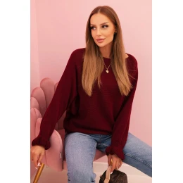 Dámsky mohérový sveter s volánovými rukávmi a výrezom na chrbte bordovej farby