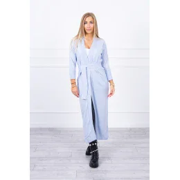 Sveter dlhý sveter viazaný v páse modrý
