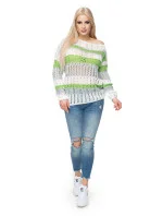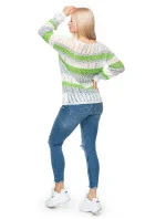 Krátky pulóver s ažurovou väzbou. Sveter s farebnými pruhmi. Sveter z mäkkej priadze.