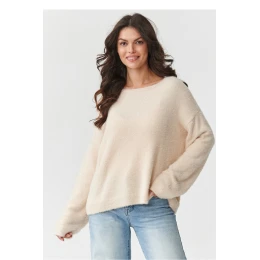Svetr vyrobený z 100% polyamidu je návrh, který kombinuje moderní design s výjimečným pohodlím. Měkký a nadýchaný materiál ve spojení s tělem jako jemným dekem poskytuje příjemné teplo v chladnějších dnech. Volný střih s mírně spuštěnou linií ramen dodává lehkost a uvolněný charakter, což se skvěle hodí jak do každodenních, tak do elegantnějších stylizací. Klasický výstřih v lodním stylu dále zdůrazňuje ženskou linii ramen a krku a široké rukávy s decentním lemováním zajišťují pohodlí po celý den. Ideální k džínům, sukni nebo legínám, tento model se rychle stane základem vaší šatníku. Svetr je k dispozici ve třech módních barvách: světle šedé, špinavě růžové a světle béžové, všechny odstíny jsou nadčasové, ženské a velmi univerzální.