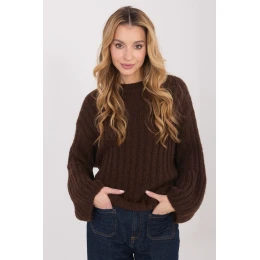 Dámský svetr s casual charakterem, vyrobený z materiálu s hrubým pletením, který se skvěle hodí do chladných dnů. Model ideální na každodenní nošení i do práce, kombinující pohodlí s klasickým stylem. Hladký vzor mu dodává univerzální vzhled a proužkovaná struktura materiálu zdůrazňuje jeho módní charakter. Svetr je vyroben z vysoce kvalitní směsi polyakrylu, polyamidu, viskózy a vlny, poskytuje teplotu, jemnost a pohodlí nošení. Standardní délka, kulatý výstřih a absence zapínání vytvářejí nadčasový střih. Dlouhé nafouklé rukávy dodávají celku ženský půvab a originalitu, činíce ze svetru stylový prvek každodenního oblékání.