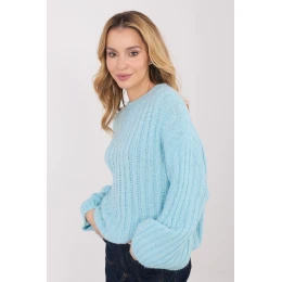 Dámsky sveter s ležérnym charakterom, vyrobený z materiálu s hrubou pikantnosťou, ktorý je ideálny na chladné dni. Model je ideálny na každodenné nosenie a do práce, pričom spája pohodlie s klasickým štýlom. Hladký vzor mu dodáva univerzálny vzhľad a pruhovaná štruktúra materiálu zdôrazňuje jeho moderný charakter. Sveter je vyrobený z kvalitnej zmesi polyakrylu, polyamidu, viskózy a vlny, ktorá poskytuje teplo, mäkkosť a pohodlie pri nosení. Štandardná dĺžka, okrúhly výstrih a absencia zapínania vytvárajú nadčasový strih. Dlhé, nadýchané rukávy dodávajú celku ženský šarm a originalitu, vďaka čomu sa sveter stáva štýlovým prvkom každodenného stylingu.