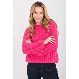 Dámský svetr s casual charakterem, vyrobený z materiálu s hrubým pletením, který se skvěle hodí na chladné dny. Ideální model pro každodenní nošení i do práce, spojující pohodlí s klasickým stylem. Hladký vzor mu dodává univerzální vzhled a pruhovaná struktura materiálu zdůrazňuje jeho módní charakter. Svrchník vyrobený z vysoce kvalitní směsi polyakrylu, polyamidu, viskózy a vlny poskytuje teplo, měkkost a pohodlí při nošení. Standardní délka, kulatý výstřih a absence zapínání vytvářejí nadčasový střih. Dlouhé, objemné rukávy dodávají celku ženský šarm a originalitu, činíce ze svetru stylový prvek každodenních outfitů.