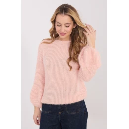 Dámsky sveter s ležérnym charakterom, ideálny na každodenné oblečenie a do práce. Model vyrobený z mäkkej a príjemnej zmesi akrylu, mohéru a vlny, ktorá zaručuje teplo a pohodlie pri nosení. Hladký vzor dodáva svetru univerzálny a nadčasový vzhľad. Štandardná dĺžka, klasický okrúhly výstrih a absencia zapínania robia sveter pohodlným a ľahko kombinovateľným. Dlhé nadýchané rukávy dodávajú celému kúsku ženský šarm a módny vzhľad, čím jemne zvýrazňujú model medzi klasickými strihmi.