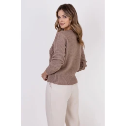 Tento elegantní kardigan v délce do boků je ideální volbou pro běžné i formálnější příležitosti. Svetr má kulatý výstřih, který mu dodává klasický šarm. Žebrované manžety navíc zajišťují dokonalé přizpůsobení. Jedinečné ozdobné vazby dodávají svetru zvláštní nádech.