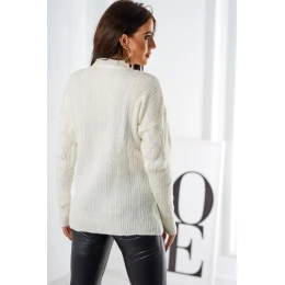 Svetr model 18970341 přes hlavu s módní vazbou ecru - K-Fashion