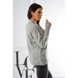 Svetr model 18970343 přes hlavu s módní vazbou šedý - K-Fashion