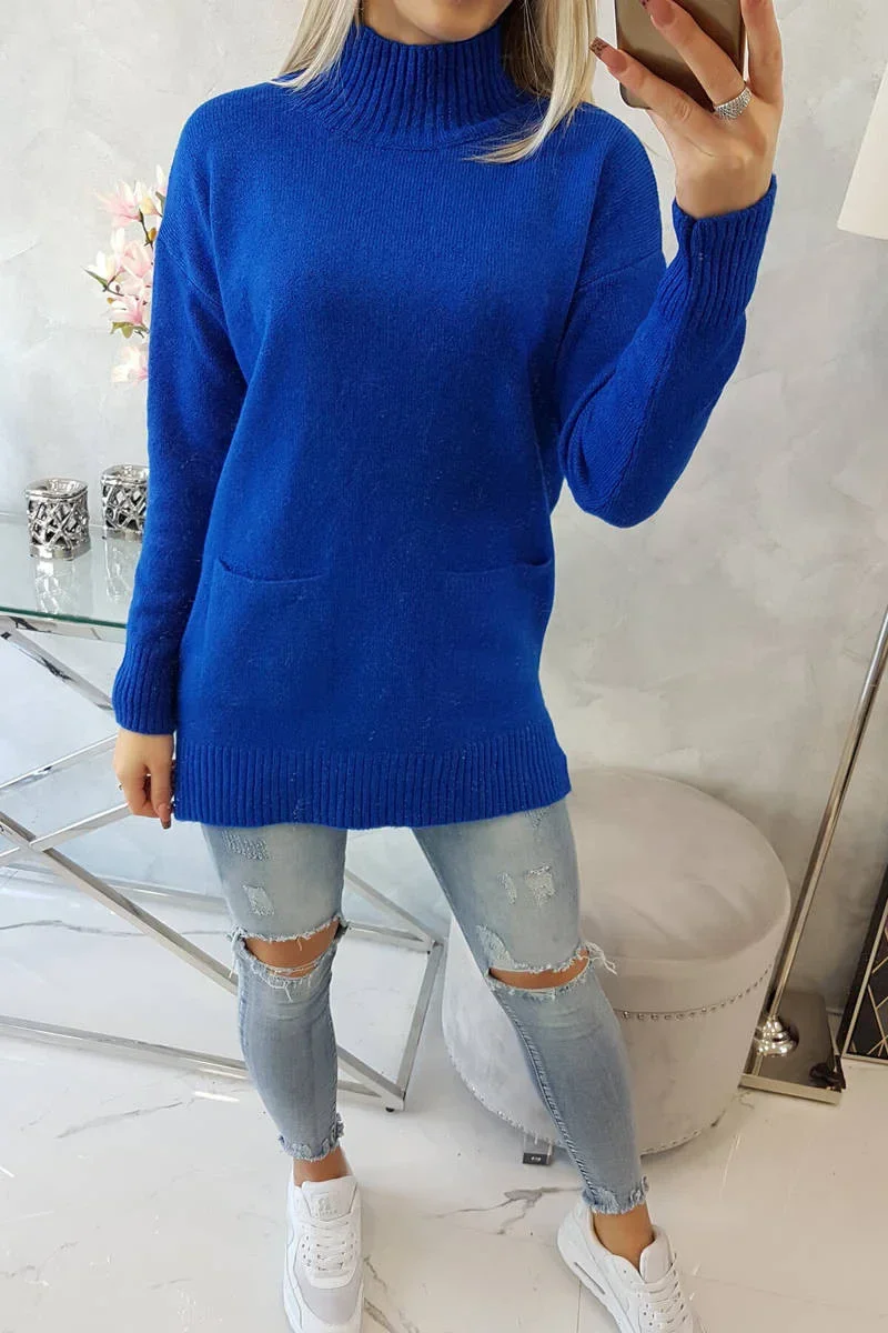 Predstavujeme vám módny sveter. Sveter má stojatý golier. Dve vrecká na prednej strane. Sveter nosený cez hlavu. Klasický strih ideálny na akýkoľvek zimný vzhľad. Hrejivé a príjemné na dotyk. Sveter je vyrobený z vysoko kvalitného materiálu. Veľkosť je univerzálna a vyhovuje dámam vo veľkostiach M, L, XL.