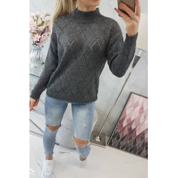 Svetr s rolákem a vzorem grafitový model 18745514 - K-Fashion