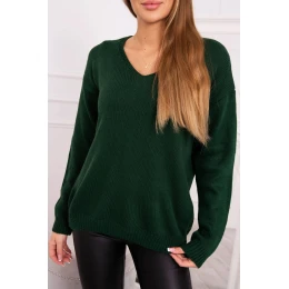 Sveter s výstrihom do V tmavo zelený
