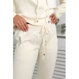 Turecký svetrový set je dokonalou kombináciou štýlu, pohodlia a funkčnosti. Mikina, ktorá je jej prvým prvkom, sa vyznačuje nielen módnym dizajnom, ale aj praktickými detailmi. Kapucňa nielen dodáva originalitu, ale tiež chráni pred vetrom a dažďom a dodáva celej súprave ležérny mestský charakter. Druhou časťou kompletu sú nohavice, ktoré dokonale ladia s mikinou. Vyrobené z výnimočne mäkkého a pružného materiálu, zaisťujú komfort nosenia po celý deň. Elastický nastaviteľný pás zaručí dokonalé prispôsobenie postave a ďalšie vrecká z nich robia nielen štýlové, ale aj praktické. Celý svetrový komplet je skvelou voľbou ako pre chladnejšie dni, tak aj pre pohodové večery doma. Štýlové detaily, vysoká kvalita spracovania a zmysel pre detail robia z tureckého svetra nielen oblečenie, ale aj výraz osobného štýlu a vkusu. Bez ohľadu na to, či sa chystáte na prechádzku, schôdzku s priateľmi alebo len relaxovať doma, táto sada bude ideálna pre každú situáciu. Veľkosť je univerzálna a bude vhodná pre ženy veľkosti S, M, L.