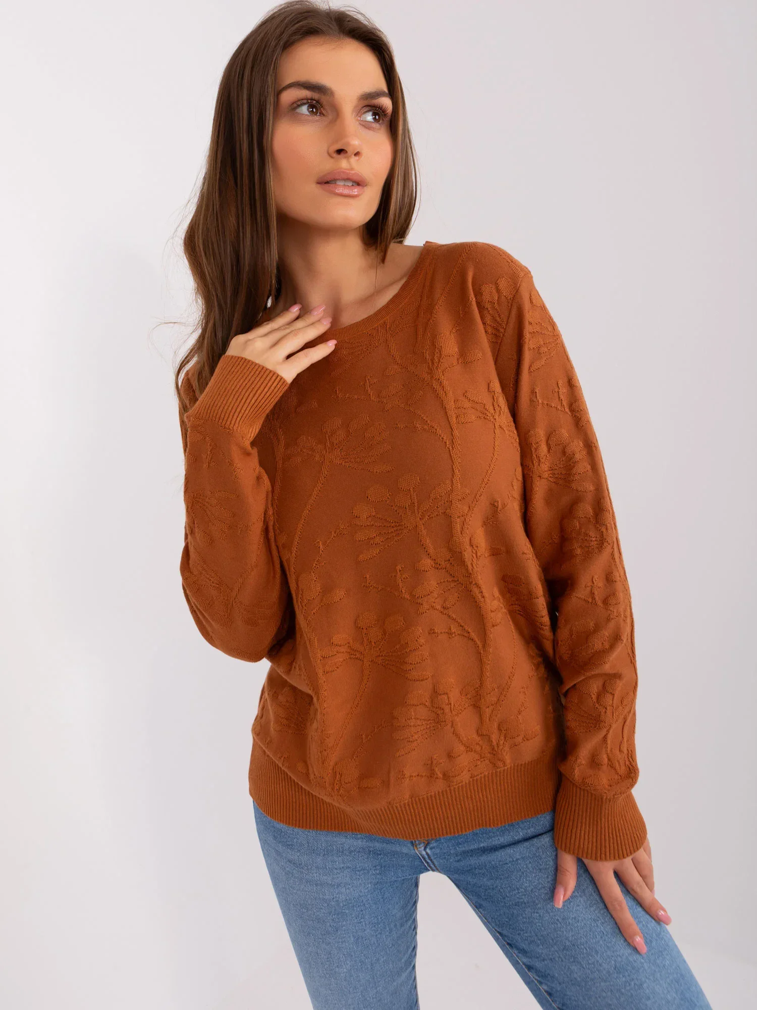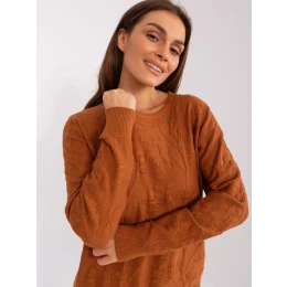 Svetlohnedý klasický sveter s okrúhlym výstrihom.