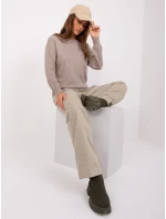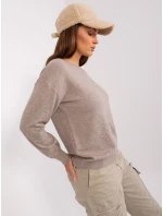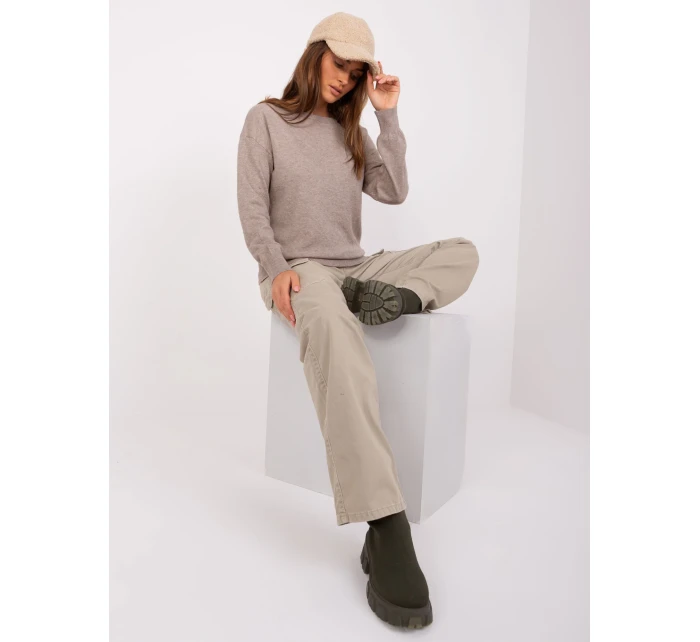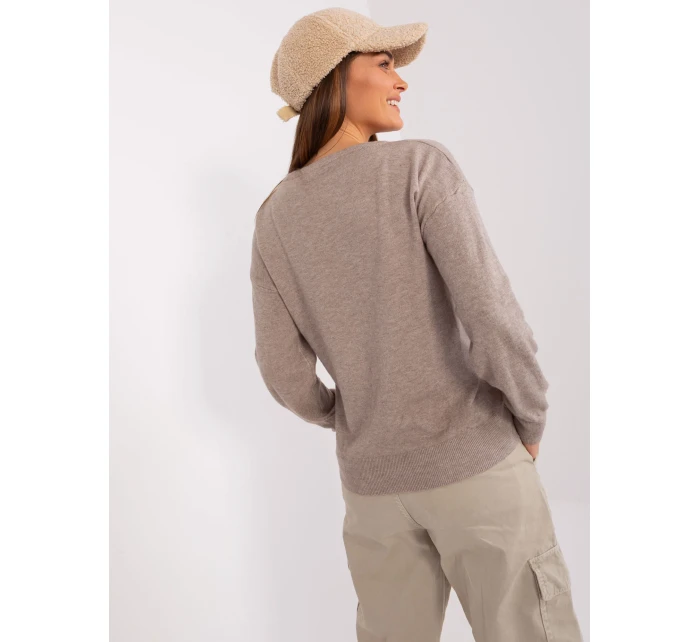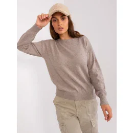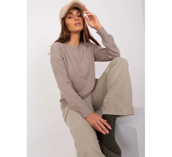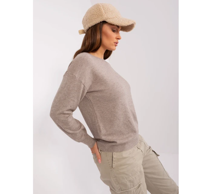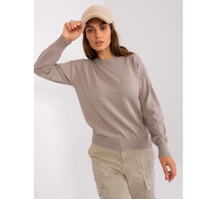 Tmavobéžový klasický sveter s dlhými rukávmi.