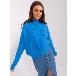 Modrý dámsky asymetrický sveter s rolákom .