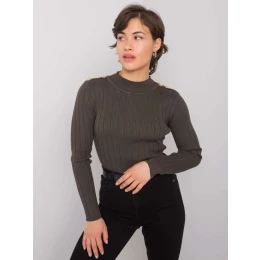 Khaki sweter damski w prążki.