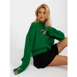 Zielony luźny sweter asymetryczny z dziurami RUE PARIS .