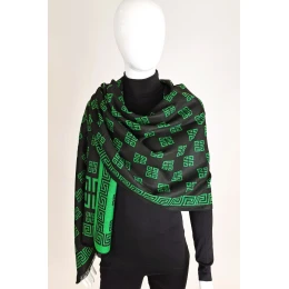 Krásna, veľká obojstranná šatka s módnym vzorom. Mimoriadne mäkká a na dotyk príjemná tkanina pripomína kašmír.