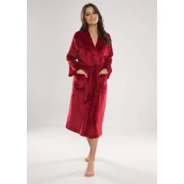 Dlhý dámsky župan, ktorý je vyrobený z mäkkého materiálu príjemného na dotyk.