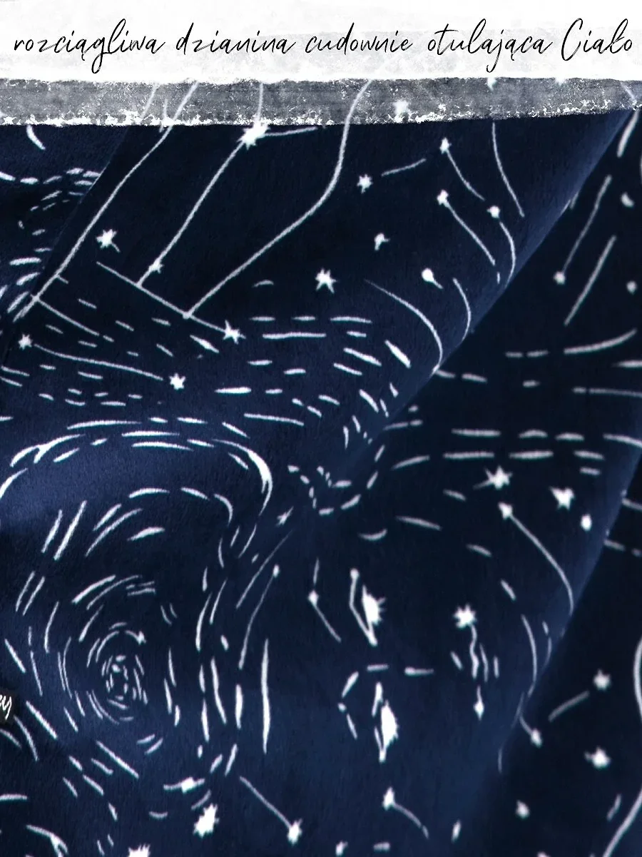 - lehký a měkký úplet se vzorem hvězdné oblohy