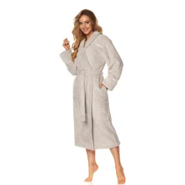 Pohodlný dlhý dámsky župan, ktorý je vyrobený z mäkkej tkaniny typu "soft".