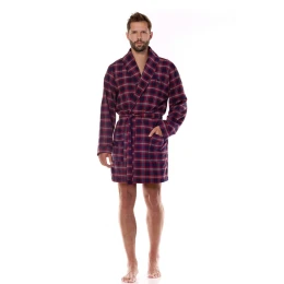 Pánský župan s dlouhými rukávy ušitý z flanelu nejvyšší kvality v pestrobarevném károvaném vzoru.