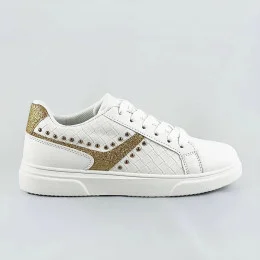 Bielo-zlaté šnurovacie dámske sneakersy (RC-03)