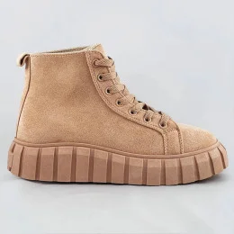 Svetlo béžové šnurovacie topánky z imitácie semišu (XA057)