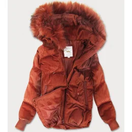 Dámska červená manšestrová bunda s kapucňou (7696)