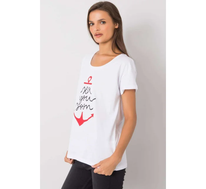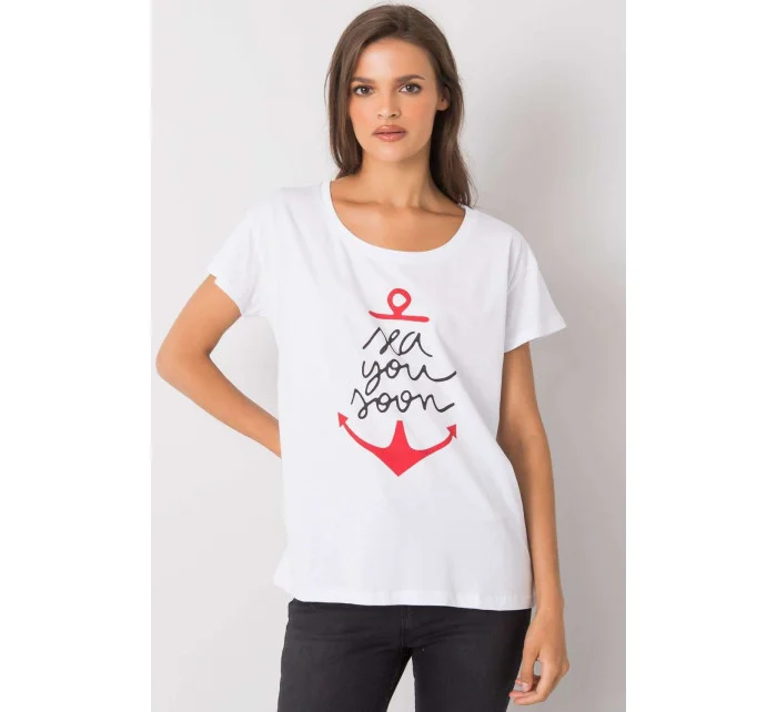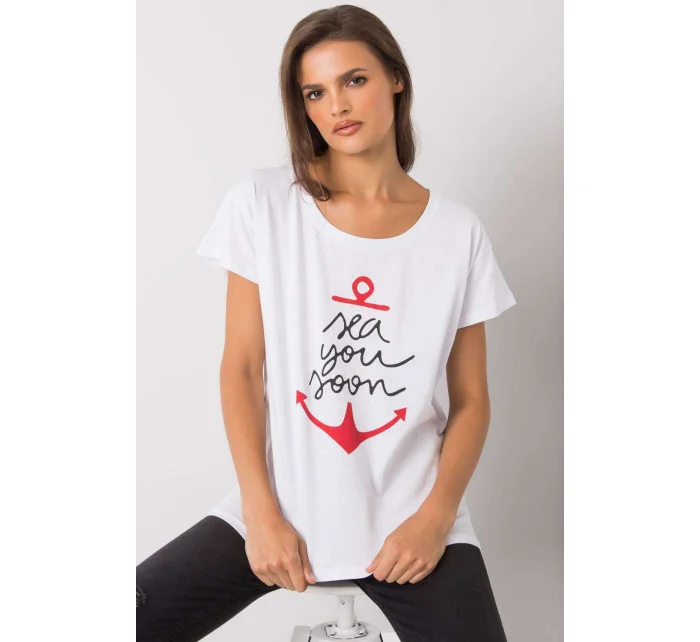 Dámske tričko s krátkymi rukávmi, okrúhlym výstrihom a ozdobnou potlačou na prednej strane.