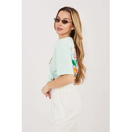 Toto štýlové dámske tričko s ležérnym charakterom nesmie chýbať v žiadnom šatníku. Je vyrobené z kvalitnej bavlny a poskytuje pohodlie pri nosení, priedušnosť a príjemné prispôsobenie sa postave počas celého dňa. Model štandardnej dĺžky s krátkymi rukávmi je ideálny na každodenné oblečenie. Klasický okrúhly výstrih mu dodáva univerzálny charakter a vďaka nemu sa hodí na mnohé kombinácie, športové aj mestské. Tričko má trendovú potlač a nápisy umiestnené na chrbte aj decentne na prednej ľavej strane hrude. Táto kombinácia dodáva celku moderný a osobitý štýl. Je ideálne na každý deň, skvele sa hodí k džínsom, šortkám alebo sukni, čím vytvára pohodlný a štýlový outfit.