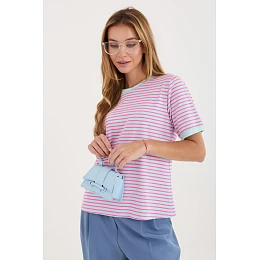 Dámske pruhované tričko je klasický ležérny dizajn, ktorý je ideálny na každodenné nosenie. Nadčasový vzor mu dodáva univerzálny charakter, vďaka čomu sa skvele hodí na mnohé štýlové kombinácie, či už s džínsami, sukňou alebo šortkami. Model štandardnej dĺžky s krátkymi rukávmi a okrúhlym výstrihom poskytuje pohodlie a voľnosť pohybu. Je vyrobený z mäkkej, priedušnej bavlny, je príjemný na pokožku a skvele sa hodí na každodenné nosenie. Je základom šatníka, ktorý spája pohodlie s jednoduchým, štýlovým vzhľadom.