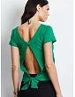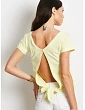 Modré tričko s výrezom a zaväzovaním na chrbte .