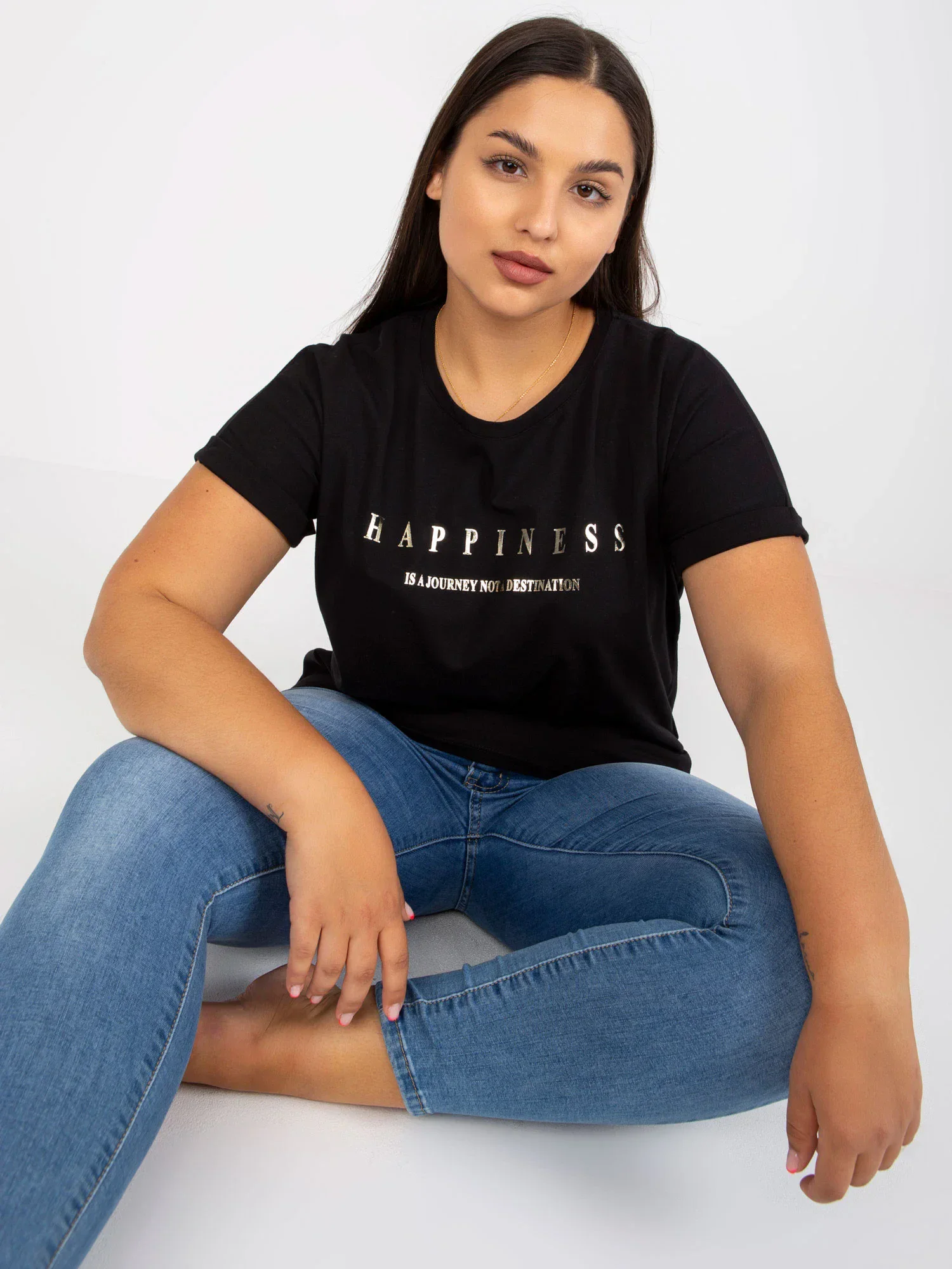 Modelka má na sebe jednu veľkosť. Rozmery modelky: výška 171 cm, poprsie 96 cm, pás 74 cm, boky 109 cm.