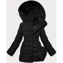 Úzka zimná bunda s opaskom čierna (23MY-207)