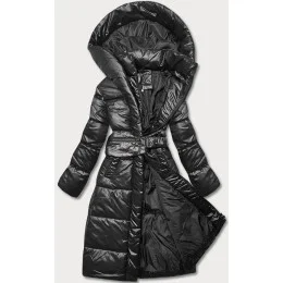 Úzka zimná bunda s opaskom čierna (l22-9869-1)